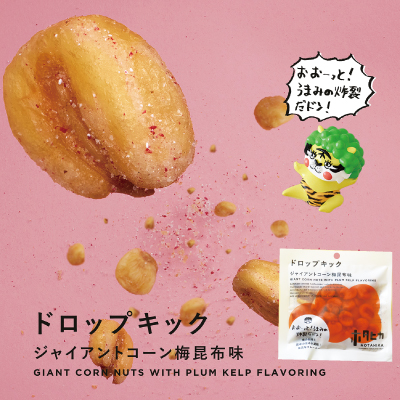 和歌山県産の梅を使用したほどよい酸味と北海道産昆布の凝縮した旨味がジャイアントコーンの味を引き立てます。