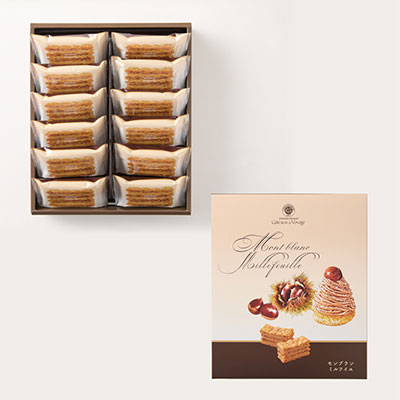 ケーキのモンブランの様な濃厚でコクのあるクリームを144層のパイでサンド した秋限定のミルフイユです。