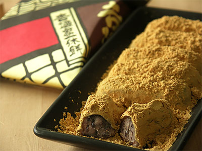 つぶあんを求肥で包み、きな粉をまぶした〈吉廻家〉の名物です。