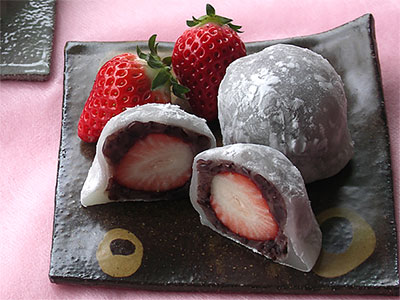 生のいちごをつぶあんと求肥で包みました。