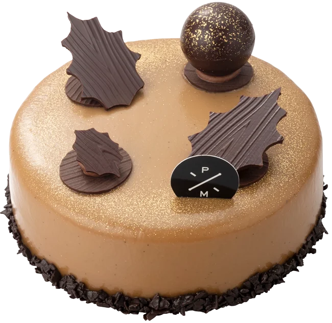 なめらかなババロワ キャラメルと濃厚なクレムー キャラメルを重ねたキャラメルケーキ。2層の深い味わいにヘーゼルナッツの風味とサクサク食感が調和します。