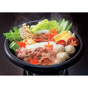 すき焼割烹の老舗が吟味を重ねた黒毛和牛肉をご用意。季節の野菜を添えました。<内容>肩・肩ロース肉、割下、長葱、白菜、春菊、椎茸、焼豆腐、白滝 ●黒毛和牛〈肩・肩ロース肉〉450g、割下350g、野菜〈...