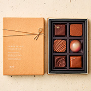 異なる3つの産地のカカオを使用したダークガナッシュ、ルバーブを使用したガナッシュ、バニラ&ペッパーのプラリネのブシェ、3種の新作レシピを限定デザインのボックスに詰め合わせました。 ●商品内容:6粒●箱...