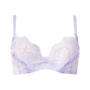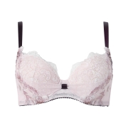 しっかりとした着用感で、脇肉が気になる方やバストの広がりが気になる方、安定感のあるつけごこちがお好みの方におすすめ。胸もとのあいたブラウスやからだにフィットするトップスの着こなしにも活躍します。花の美しい瞬間を切り取った、押し花のようなレースが華やか。さりげなくきらめくゴールドカラーののラメ糸もポイントです。