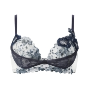 ラナンキュラスの花を描いたチュールアップリケに、ラインストーンできらめきをプラス。晴れやかな魅力を放つデザインです。