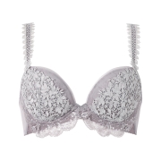 カップにあしらったケミカルレースが贅沢なデザイン。可憐な小花とリーフのモチーフがノスタルジックな雰囲気を演出します。ストラップには格子調のアップリケ、土台にはラッセルレースを組み合わせて、エレガントさの中にかわいらしさもある仕上がりに。異なる魅力を持つ表情豊かなレースが胸もとを華やかに彩り、タイムレスな魅力を楽しめます。