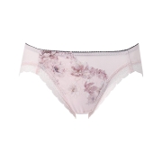 ●はきごこちがよい バックはやわらかく伸びるナイロンベア天竺素材で、はきごこちがよい「リボンブラ 脇すっきり(BXB443)」とペアコーデが楽しめるショーツ。あさめのはきこみ丈で、すっきりとした印象です。花の美しい瞬間を切り取った、押し花のようなレースで華やかに。
