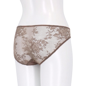 バックには透け感があるやわらかな素材を使用・フロントは裏打付きで透けにくい優美なリバーレースの花々に可憐な蝶々のモチーフが舞う、繊細で?軽やかなデザインのショーツ。あさめのはきこみ丈ですっきりとした印象に。総レース仕立てならではの上品な透け感が美しい華奢なデザインに仕上げました。シンプルなカラーリングにすることで、モダンで洗練された雰囲気を演出。ラグジュアリーさと気品を感じる一枚です。