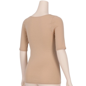ふんわりとしたやわらかな風合いと、包みこんでくれるようなあたたかさが魅力のインナー。秋冬ファッションの袖口から見えにくく、さまざまな着こなしと合わせやすい5分袖タイプです。半端袖のトップスなどと好相性。すっきりと着こなせるため、重ね着コーディネイトのインナーとしても活躍。着ぶくれしたくないけどあたたかく過ごしたいという方におすすめです。吸放湿性があるので意外と気になる冬のムレ対策にも。