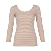 ふんわりとしたやわらかな風合いと、包みこんでくれるようなあたたかさが魅力のインナー。8分袖なので腕まであたたかく、袖口からは見えにくい絶妙な丈感です。すっきりと着こなせるため、重ね着コーディネイトのインナーとしても活躍しそう。着ぶくれしたくないけどあたたかく過ごしたいという方におすすめです。吸放湿性があるので意外と気になる冬のムレ対策にも。ナチュラルなベーシックカラーとポップなボーダー柄のラインアップ。