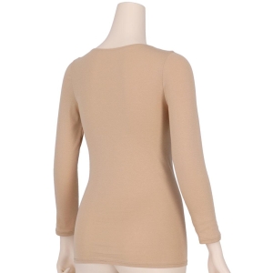 ふんわりとしたやわらかな風合いと、包みこんでくれるようなあたたかさが魅力のインナー。腕をあたたかく包みこむ8分袖で、袖口からは見えにくい絶妙な丈感。ネック浅めで、デコルテ部分も広範囲にカバーします。すっきりと着こなせるため、重ね着コーディネイトのインナーとしても便利。着ぶくれしたくないけどあたたかく過ごしたいという方におすすめです。吸放湿性があるので意外と気になる冬のムレ対策にも。