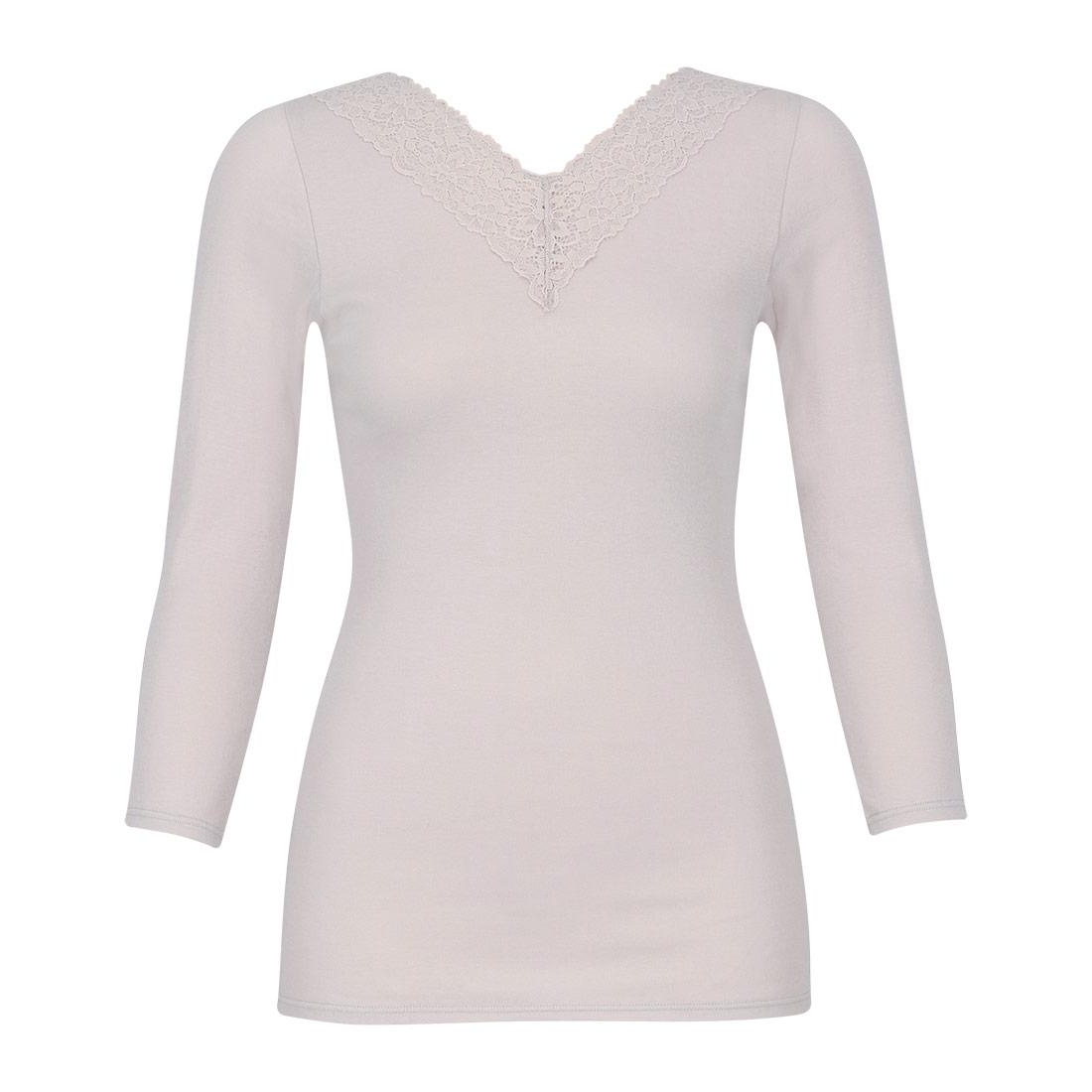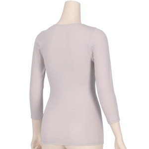 まるで空気をまとっているかのように軽やかであたたかなインナー。しっとりやわらかな風合いでここちよい着用感です。身生地はオーガニックコットン100%でやさしい肌あたり。秋冬ファッションの袖口から見えにくく、さまざまな着こなしと合わせやすい7分袖タイプです。襟あきが浅めなのでデコルテをしっかりカバーしてあたたかい。脇マチ付きで動きやすくしました。レースをあしらった華やかなネックデザインでプレゼントにもおすすめ。