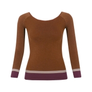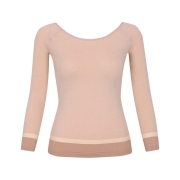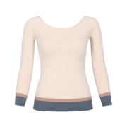 ●360°ここちよく伸びて、快適 特殊編地の縦横斜めによく伸びる生地が、からだの動きになじみやすく快適にフィット●“思いの丈”に調整できる アウターや気温変化に合わせて、袖丈は7分袖?9分袖程度まで長さ調節可能●やさしい肌あたり 脇、袖下に接ぎがなく、肌あたりを軽減●あたたかく、快適な着ごこち 身生地に保温性のある素材を使用・本体の裾と袖口の2色カラー切り替えで華やかなデザイン