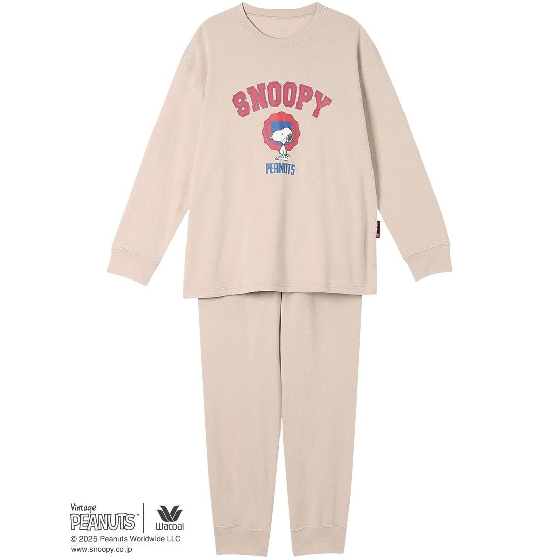 ・前身頃のロゴとスヌーピーを組み合わせたアメリカンカレッジ風のハンドプリントがデザインポイント