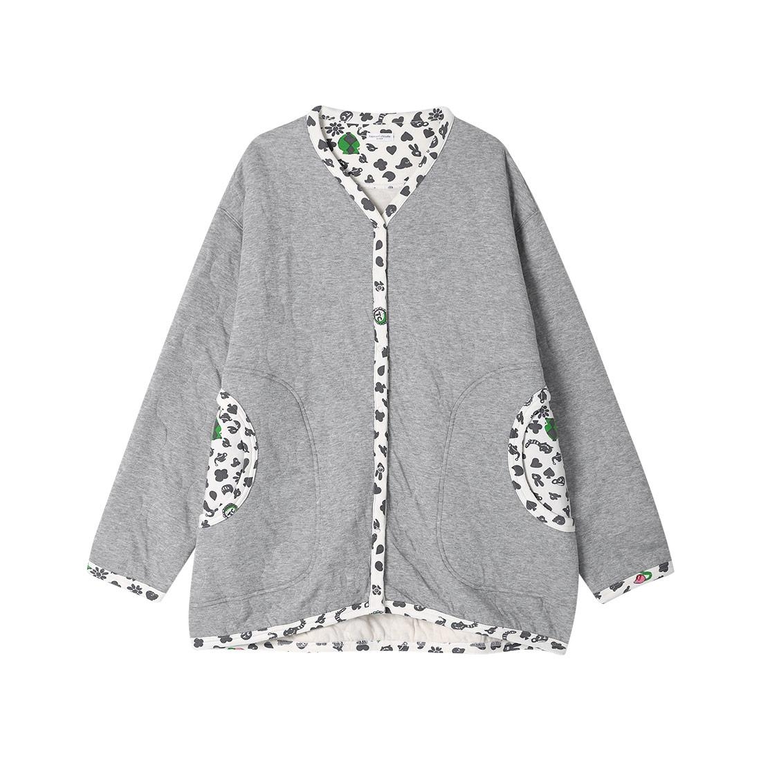 ・ポケット部分と、ネックまわりや、袖口、裾に「とびまわるかわいいおばけ」のプリントをほどこした羽織もの