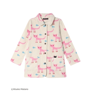 ・まつ毛がポイントの猫と魚が愛らしいテキスタイル