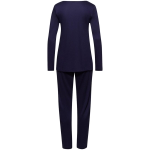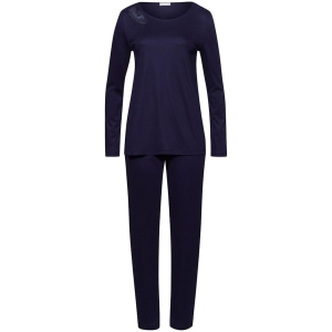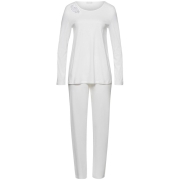 トップスの右肩にレースがあしらわれたエレガントなパジャマソフトでなめらかな着ごこちオーストリア産の装飾的な立体レースと花柄刺繍は、HANROのデザインチームが新しい技術で特別に制作したもの