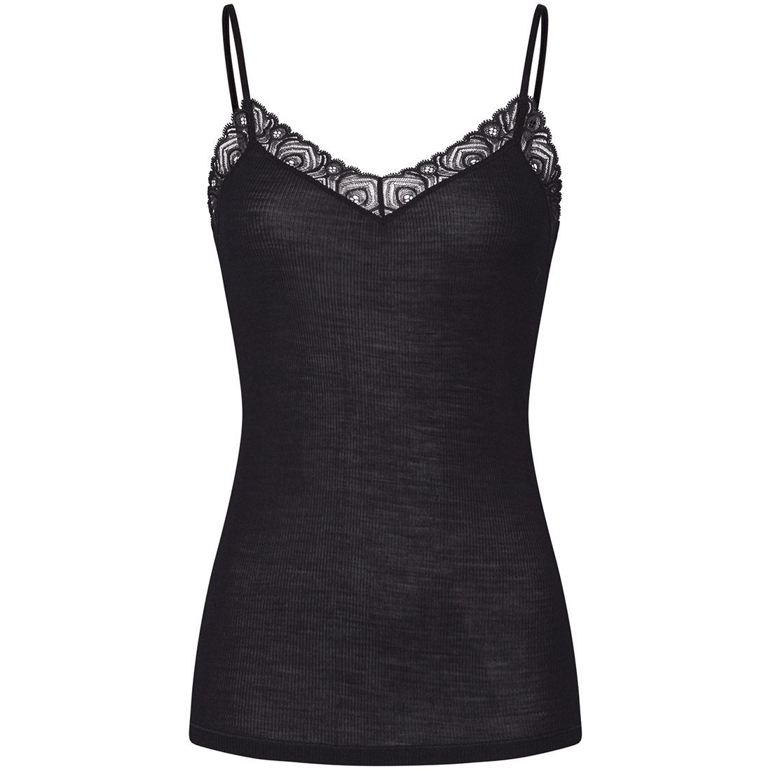 胸もとから脇下まで贅沢にあしらわれたジャカードレースが繊細で美しいキャミソール