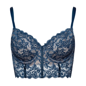 フランス製のレースを使用した透明感のあるブラジャー(5段ホック)カップ部分はベージュカラーのチュールの裏打ち付きで、バストトップが目立ちにくい創業140周年記念タグ付き