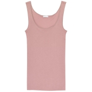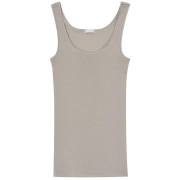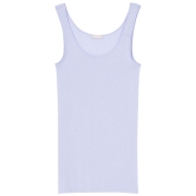 シルケット加工をほどこした、光沢感のある綿100%(身生地)のタンクトップ。
