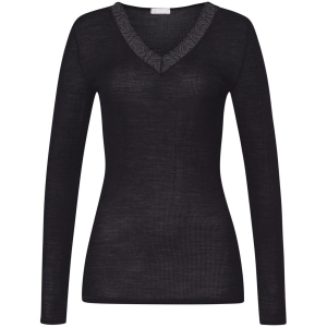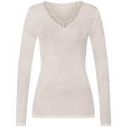 胸もとにあしらわれたジャカードレースが繊細で美しい長袖のトップス