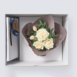 ◎ネット限定品ホシファームで丁寧に育まれた、清楚で輝きを放つような白バラ・アバランチェで仕上げる、可愛らしいサイズのアレンジメント。保水処理・吸水スポンジがセットされているので、届いたらそのまま飾れます。濃厚なチョコレートの生地に、香ばしいナッツや甘酸っぱいフルーツをトッピングした贅沢ブラウニー3個とセットにしてお届けします。