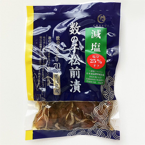 昔ながらの松前漬に数の子を70%加え、25%減塩した贅沢で体に優しい数の子松前漬です。日本食品標準成分の食塩相当量から25%減塩しております。※完全包装・二重包装等の特殊な包装は出来かねます。