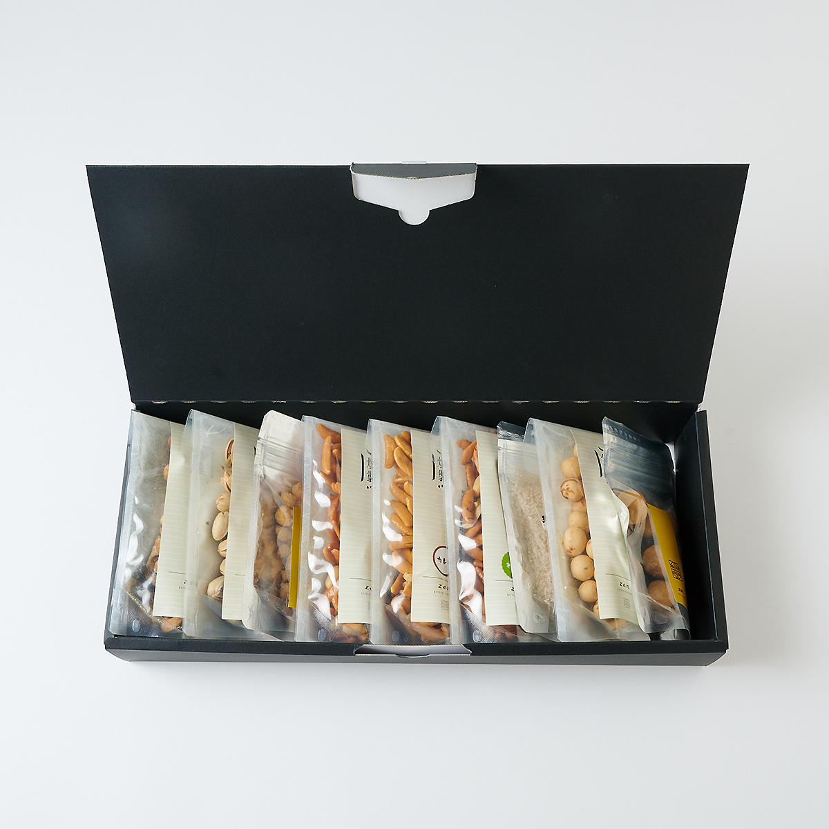 ●内容:ナッツの燻製、柿の種の燻製、柿の種の燻製(わさび)、柿の種の燻製(カレー)、ピスタチオの燻製、いかピーの燻製、ハニーローストピーナッツの燻製、きなこ大豆の燻製、燻し塩(フルールド・セル)