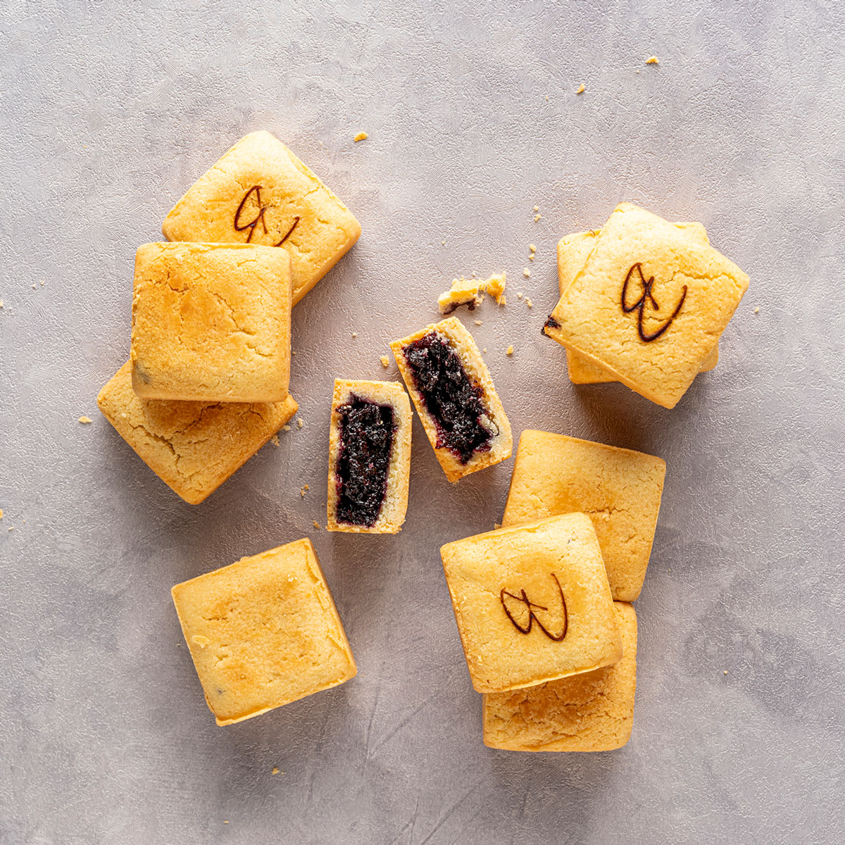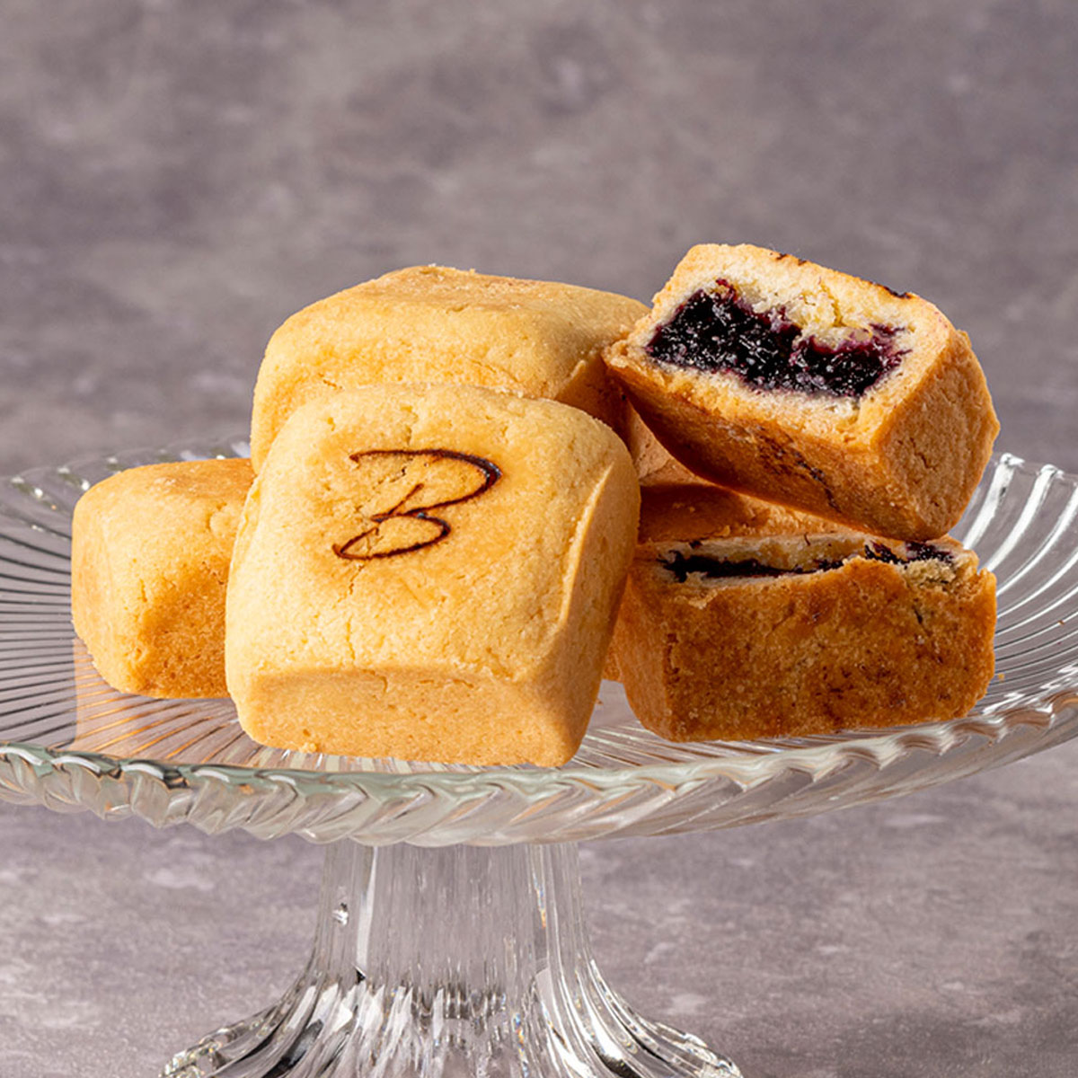 ◎渋谷 東急フードショー取扱商品定番サイズ!ブルーベリーをふんだんに使用したオリジナルブルーベリーフィリングを、さくほろ食感の生地に包んだ優しい甘さの焼菓子です。