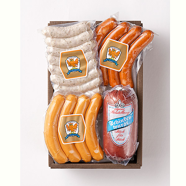 ●内容:オリジナルウィンナー4本入り1パック(160g)、シンケンブルスト1本(280g)、ニュールンベルガー10本入り1パック(190g)、デプレチーナー4本入り1パック(160g)●箱サイズ:17.0×26.2×8.4cm●商品に含まれるアレルギー特定原材料8品目:なし●アルコール使用:なし●賞味期限:冷蔵14日>>シュマンケルステューベ 商品一覧