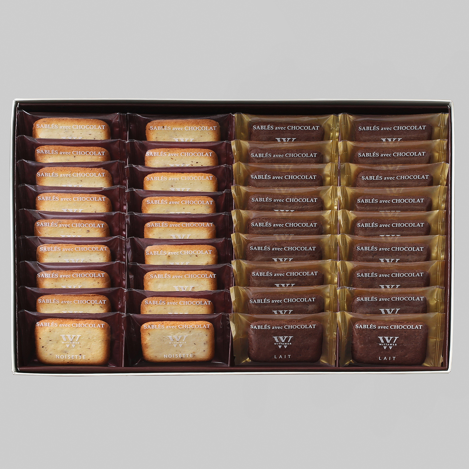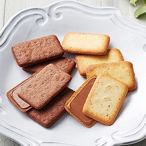 軽やかな食感に焼き上げたサブレでチョコレートをサンド。まろやかなミルクチョコレートと香ばしいヘーゼルナッツの美味しさをサクサクのサブレで挟んでとじ込め、気品のある味わいに仕上げました。