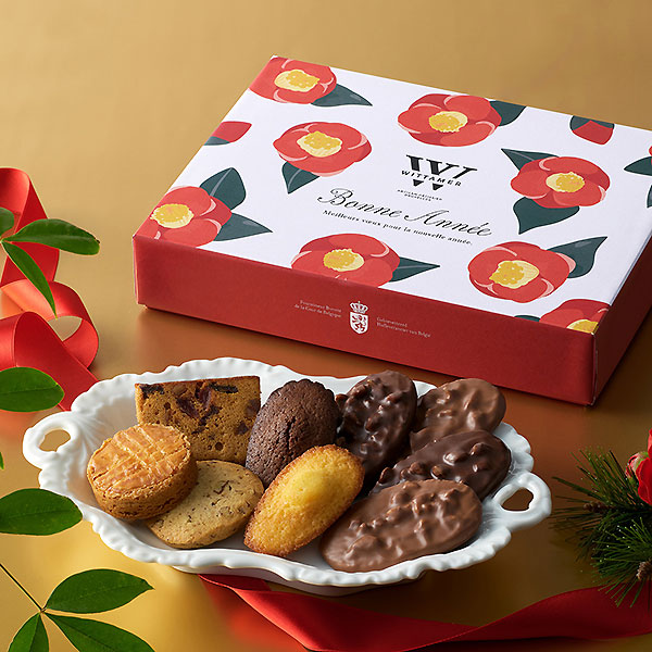 ◎渋谷 東急フードショー取扱商品人気のマカダミア・ショコラやマドレーヌなど風味豊かな焼き菓子をお正月限定のパッケージに詰め合わせました。