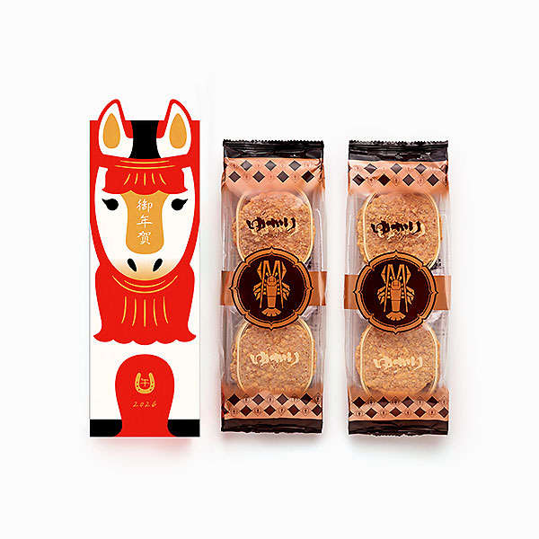 ◎渋谷 東急フードショー取扱商品江戸時代の製法に由来する匠の技で焼き上げまで手間ひま七日以上。坂角の真髄、元祖海老せんべいです。干支限定パッケージで登場。