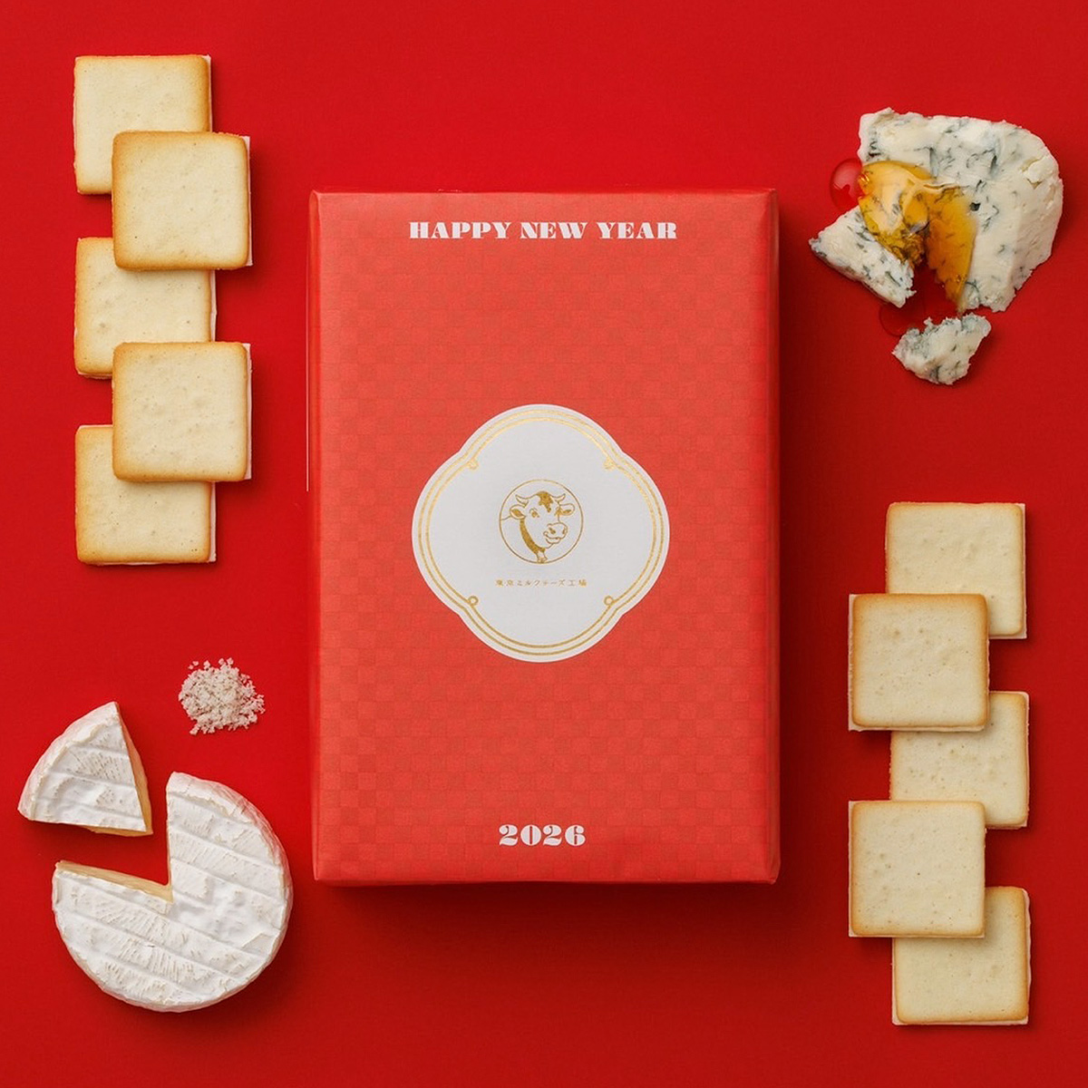 東京ミルクチーズ工場の人気No.1商品「ソルト&カマンベールクッキー」と、一度食べるとクセになる「蜂蜜&ゴルゴンゾーラクッキー」を楽しめるアソートボックスです。今だけの迎春パッケージでお届けいたします。贈答用にはもちろん、ご自宅用にもおすすめです。
