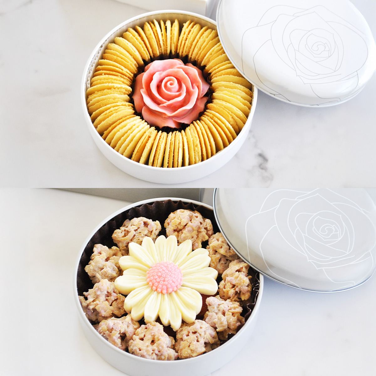 ●内容:リングバニラローズチョコ(ラングドシャバニラ30g、ローズチョコ1個、フレーズサブレ1枚)、ガーベラクランチホワイトチョコ(ホワイトチョコクランチ50g、ガーベラホワイトチョコ1個、フレーズサブレ2枚)<br>●箱サイズ:12×12×10cm●商品に含まれるアレルギー特定原材料8品目:小麦、卵、乳成分●アルコール使用:なし●賞味期限:製造から30日※商品は2段重ねで包みます