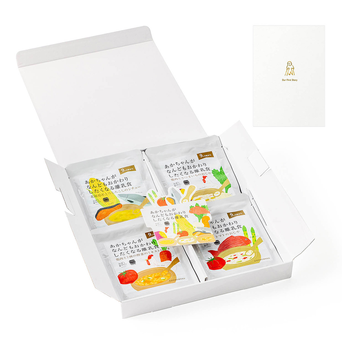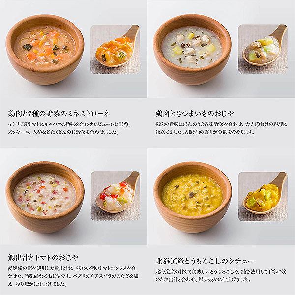 Soup Stock Tokyoのパパママ社員が中心となりこの離乳食は生まれました。誰にとっても、食事の時間は大切なもの。お子様も目や鼻や口をいっぱい使ってたくさんのおいしい情報を得ています。“食事の時間って楽しいな”と感じてもらえるよう、彩りを意識した食材選びから味や香りの組み合わせまで、赤ちゃんのための特別な一皿に仕上げました。