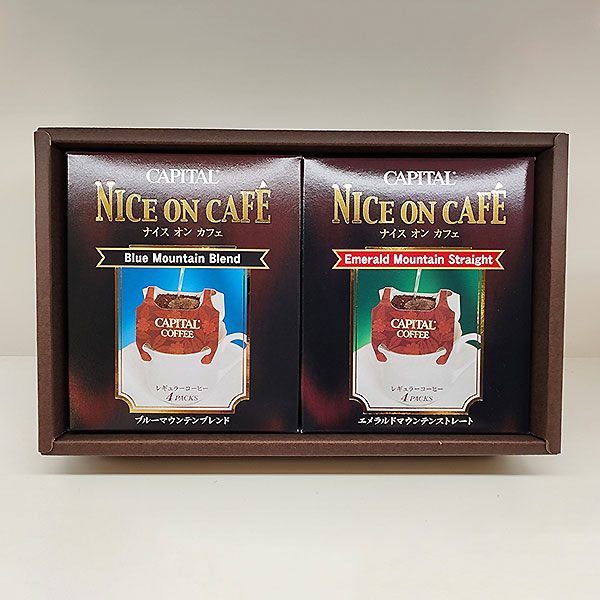 ●内容:ブルーマウンテンブレンド(8g×4P)、エメラルドマウンテンストレート(8g×4P)●箱サイズ:24.5×15.3×6.0cm●商品に含まれるアレルギー特定原材料8品目:なし●アルコール使用:なし●賞味期限:製造日から1年>>キャピタルコーヒー 商品一覧>>冬の手みやげ・ごあいさつ 商品一覧