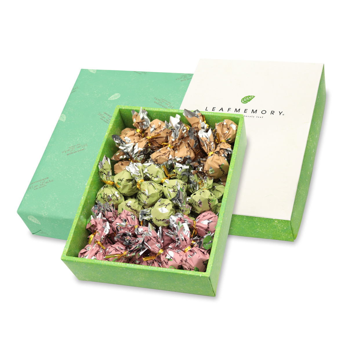 ●内容:リーフメモリー緑(抹茶・ダーク・ミルク)18個、リーフメモリー橙(モカ・ホワイト・ミルク)19個、リーフメモリー桃(クランベリー・キャラメル・ミルク)18個●箱サイズ:26.5×19.0×6.2cm●商品に含まれるアレルギー特定原材料8品目:乳製品●アルコール使用:なし●賞味期限:製造日から6ケ月外のしのみ可>>モンロワール 商品一覧>>冬の手みやげ・ごあいさつ 商品一覧