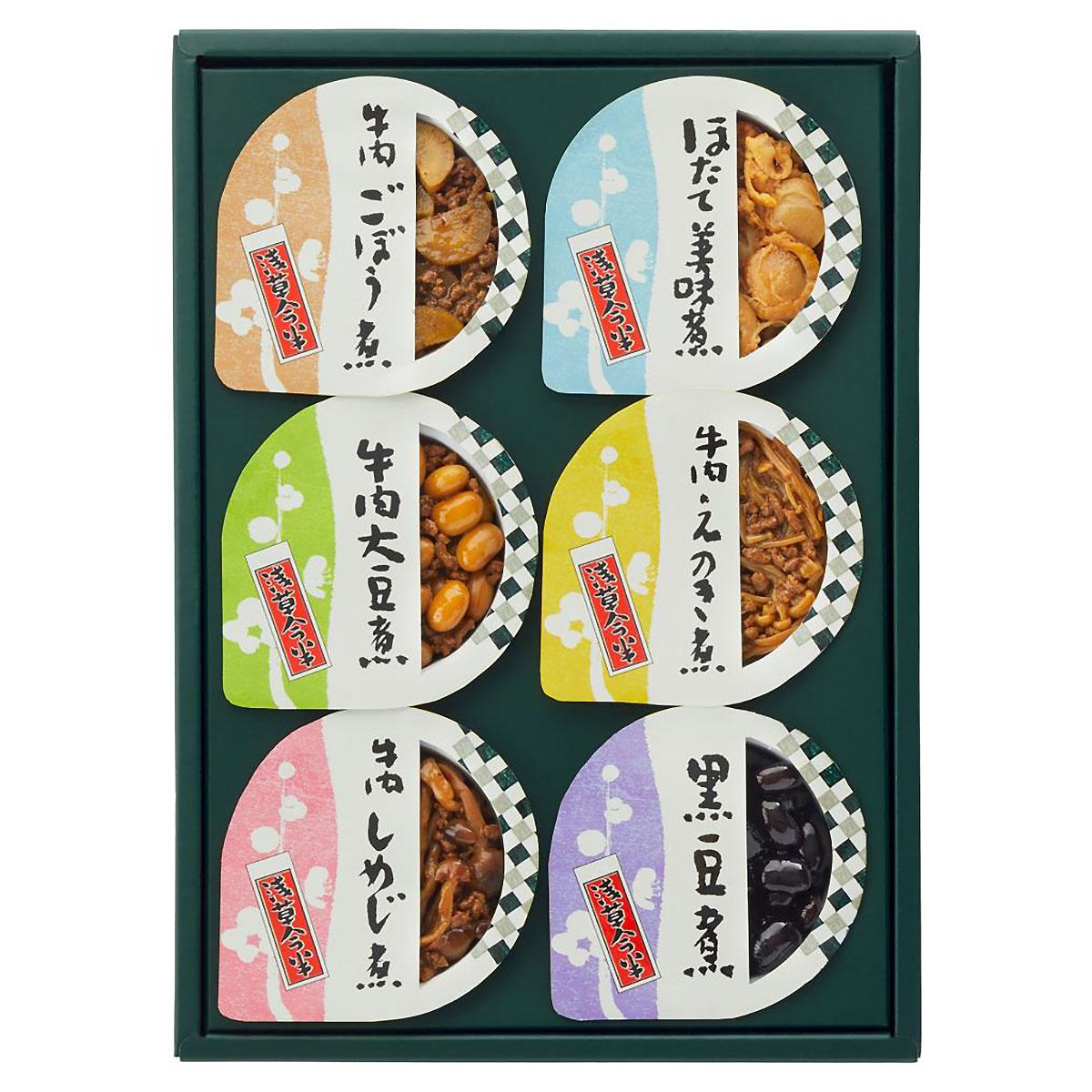 ●内容:牛肉ごぼう煮35g、牛肉大豆煮40g、牛肉しめじ煮40g、黒豆煮40g、牛肉えのき煮45g、ほたて美味煮45g●箱サイズ:縦28.6×横20.8×高さ3.0cm●商品に含まれるアレルギー特定原材料8品目:小麦●アルコール使用:なし●賞味期限:常温270日>>浅草今半 商品一覧>>冬の手みやげ・ごあいさつ 商品一覧