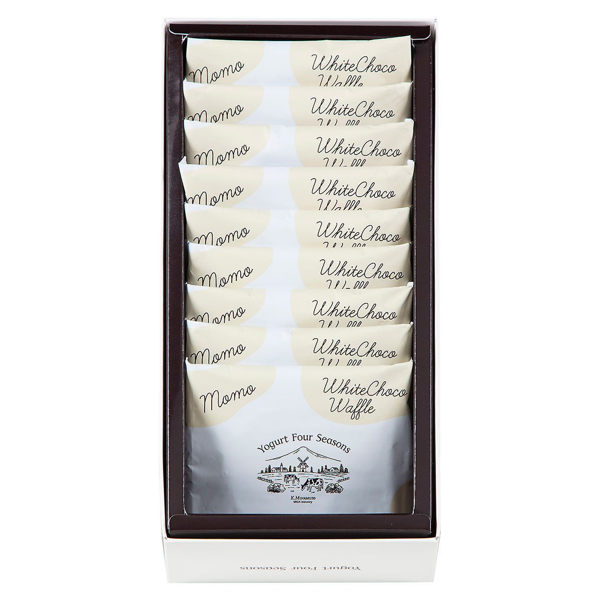 ●内容:モーモーホワイトチョコワッフル×9●箱サイズ:11.0×23.5×5.5cm●商品に含まれるアレルギー特定原材料8品目:乳成分、小麦、卵●アルコール使用:なし●賞味期限:製造から100日>>ヨーグルトフォーシーズンズ 商品一覧>>冬の手みやげ・ごあいさつ 商品一覧