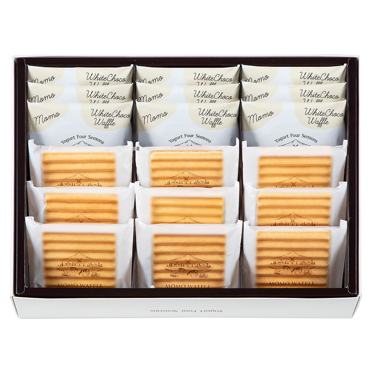 ●内容:モーモーワッフル×9 モーモーワッフルホワイトチョコワッフル×9●箱サイズ:23.0×30.0×5.5cm●商品に含まれるアレルギー特定原材料8品目:乳成分、小麦、卵●アルコール使用:なし●賞味期限:製造から100日>>ヨーグルトフォーシーズンズ 商品一覧>>冬の手みやげ・ごあいさつ 商品一覧