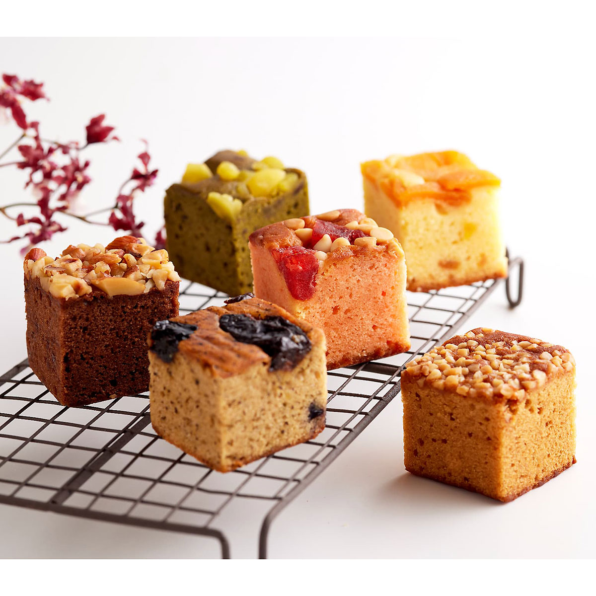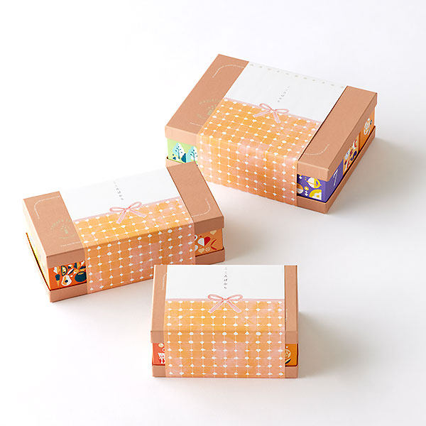 可愛いキューブ型のパウンドケーキ。それぞれの素材の持ち味を生かした豊富なフレーバーを楽しめます。おいしさ長持ちの個包装で、積み木を思わせる手のひらサイズのボックスに収めました。大切な方への冬のご挨拶に是非いかがでしょうか。