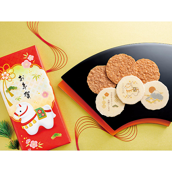 ◎渋谷ヒカリエ ShinQs(シンクス)取扱商品新年にふさわしい「干支」「松竹梅」「富士山」を描いたえびせんべいの詰合せ。干支を描いた包装紙はそのままお年賀としてお遣いいただけます。
