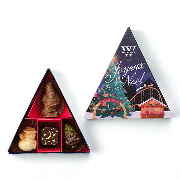 ●内容:サパン・ド・ノエル(ビターガナッシュ)×1、スノーマン(キャラメルクリーム)×1、サンタ(ミルクチョコガナッシュ)×1、ツリー(ピスタチオ)×1