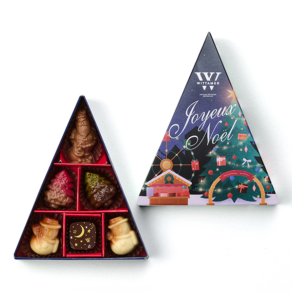 ●内容:サパン・ド・ノエル(ビターガナッシュ)×1、スノーマン(キャラメルクリーム)×2、サンタ(ミルクチョコガナッシュ)×1、ツリー(ピスタチオ)×1、ツリー(フレーズ)×1