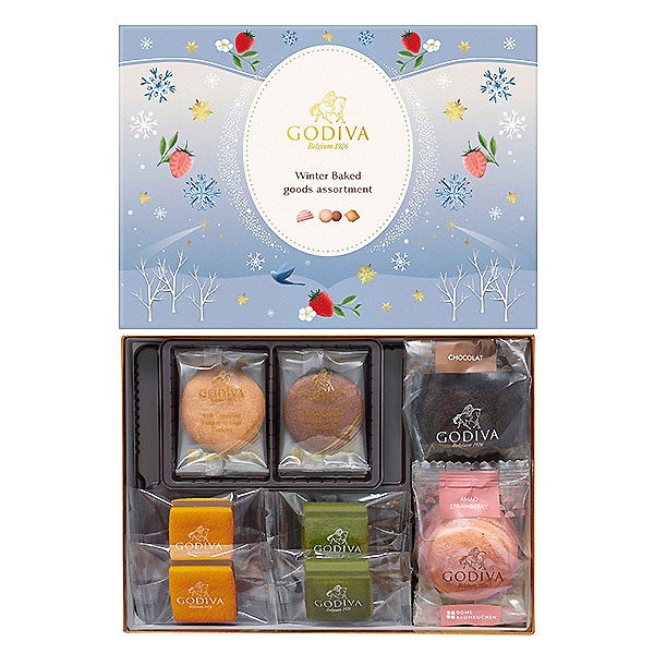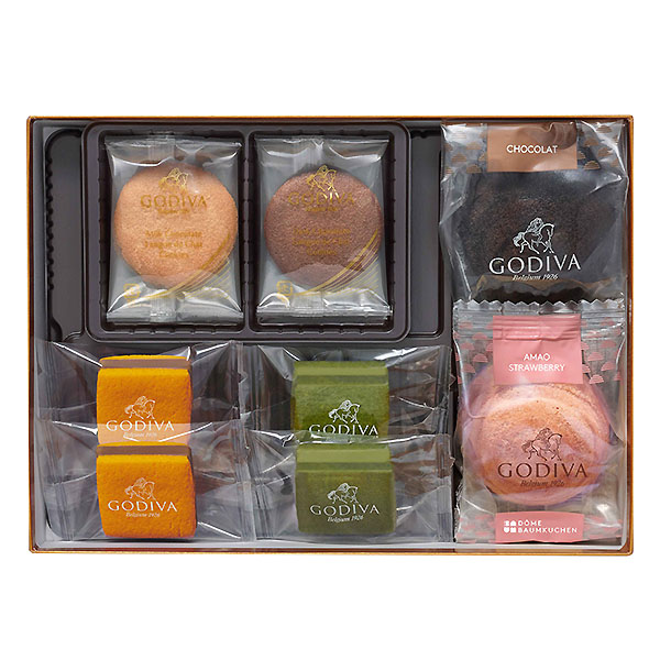 ●内容:サブレショコラ4個(ミルクチョコレートキャラメル・抹茶&ホワイトチョコレート各2個)、ドームバームクーヘン2個(あまおう苺、ショコラ各1個)、ラングドシャクッキー4枚(ミルクチョコレート・ダークチョコレート各2枚)