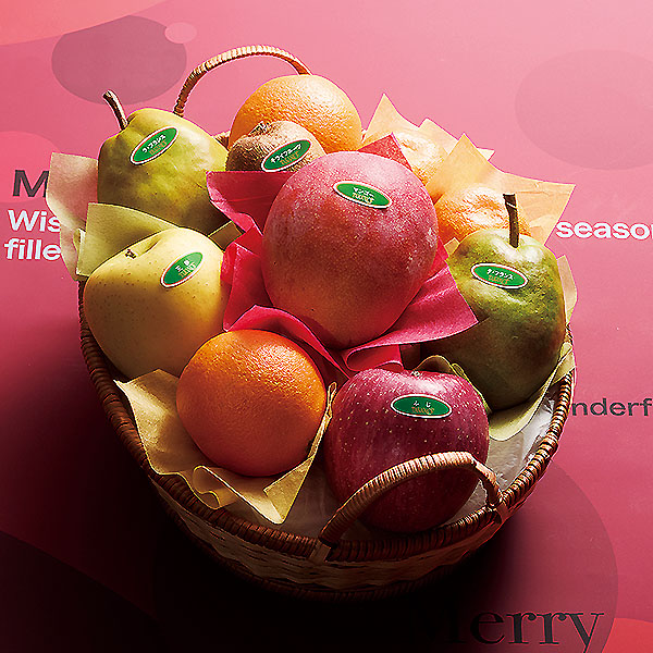 ●内容:ラ・フランス(山形県産)、オレンジ(アメリカまたはオーストラリア産)、みかん(愛媛県、和歌山県、熊本県または長崎県産)×各2、キウイフルーツ(ニュージーランド産、愛媛県産または和歌山県産)、ふじ(青森県、山形県、長野県または岩手県産)、王林(青森県、長野県、山形県、岩手県または秋田県産)、マンゴー(ブラジル、オーストラリアまたはペルー産)×各1