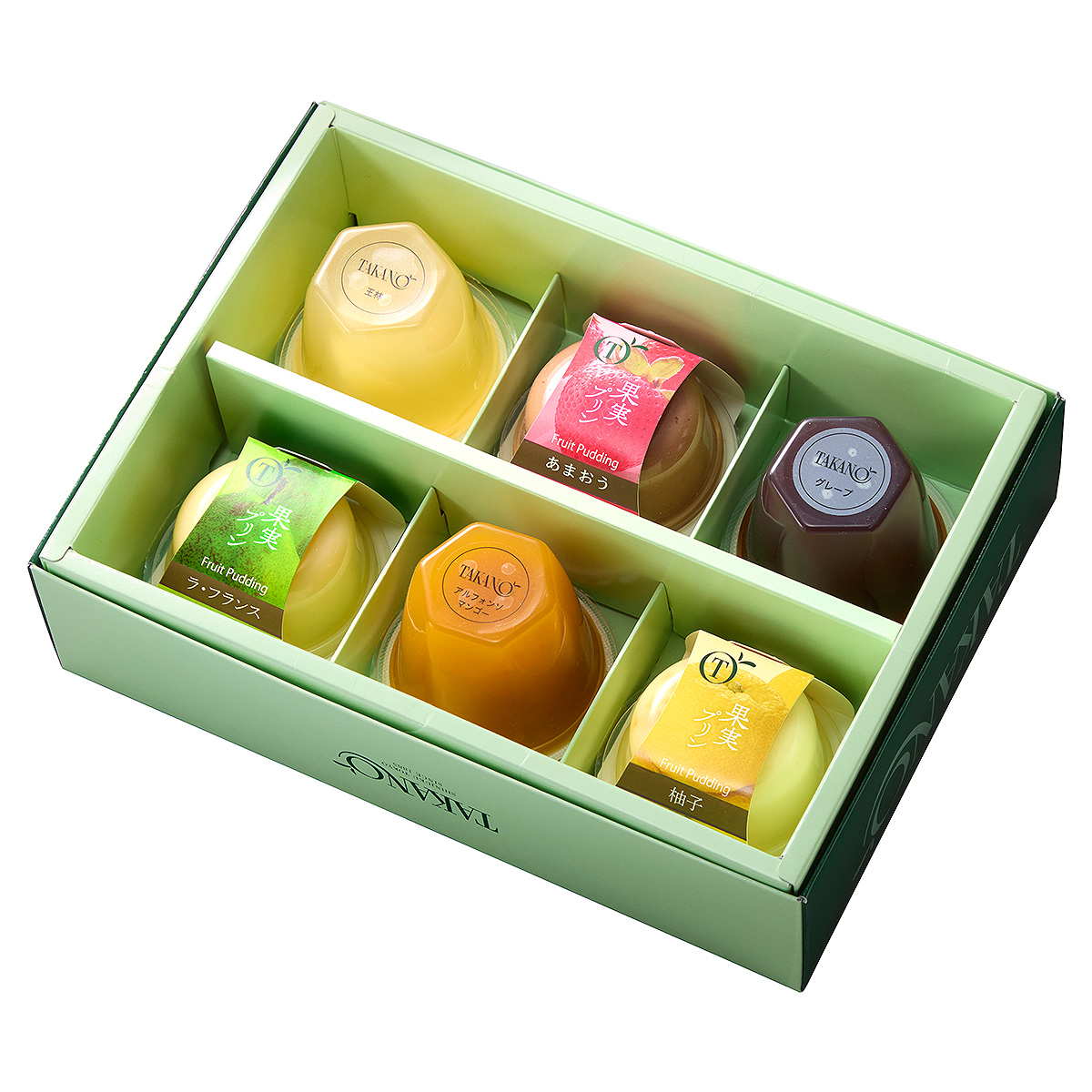 ●内容:果実ゼリー(グレープ、アルフォンソマンゴー、王林×各1)、果実プリン(あまおう、柚子、ラ・フランス×各1)