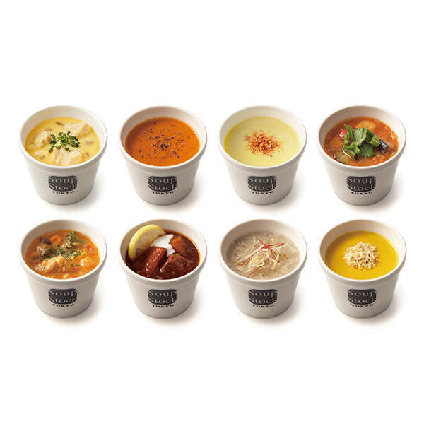 北海道産とうもろこしと鶏肉のシチュー×1、オマール海老のビスク×1、とうもろこしとさつま芋のスープ×1、トマトと鶏肉のシチュー×1、東京ボルシチ×1、東京参鶏湯×1、ミネストローネ×1、北海道産かぼちゃのスープ×1