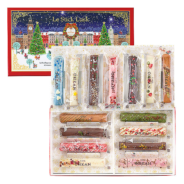 “大人可愛い”ד楽しい” CAFE OHZANのクリスマスの世界Xmasスティックラスクのパッケージデザインではヨーロッパの街並みをohzan風にイメージしました。ラスクにはフランス語でメリークリスマスを意味する「Joyeux Noel」のプレートやメレンゲでおつくりしたクリスマスリースやトナカイ柄のシートで可愛さを演出しています。贈る人も贈られる人も、楽しくなるohzanのXmasギフト、今年も喜んでいただいて、みんなを笑顔で繋ぎますように・・・>>[クリスマスギフト]洋菓子 商品一覧>>クリスマスギフト 商品一覧